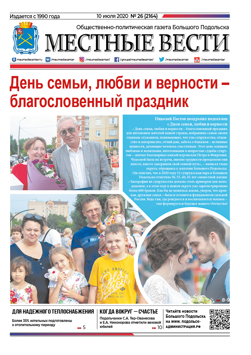 • День семьи, любви и верности – благословенный праздник. 15 золотых юбиляров совместной жизни наградили в торжественной обстановке на бульваре Юности в Подольске.