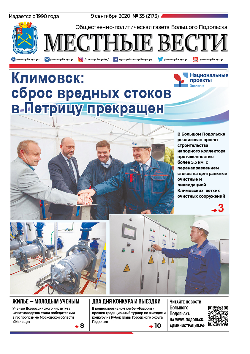 В Большом Подольске реализован проект строительства напорного коллектора протяженностью более 5,5 км с перенаправлением стоков на центральные очистные и ликвидацией Климовских ветхих очистных сооружений.