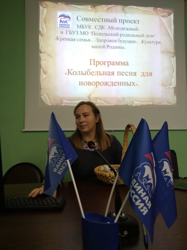 17.02.2020 года в рамках реализации партийного проекта “Культура малой Родины” , член Фракции «Единая Россия» в Совете депутатов Городского округа Подольск, муниципальный куратор партийного проекта И.Г.Талпа в Подольском родильном доме организовала очередную познавательную лекцию-беседу с интересными фотографиями и видеоматериалами, а также с исполнением колыбельных песен под гитару. Волонтёрами проекта, семьёй Болотниковых, Александром и Екатериной, при поддержке
