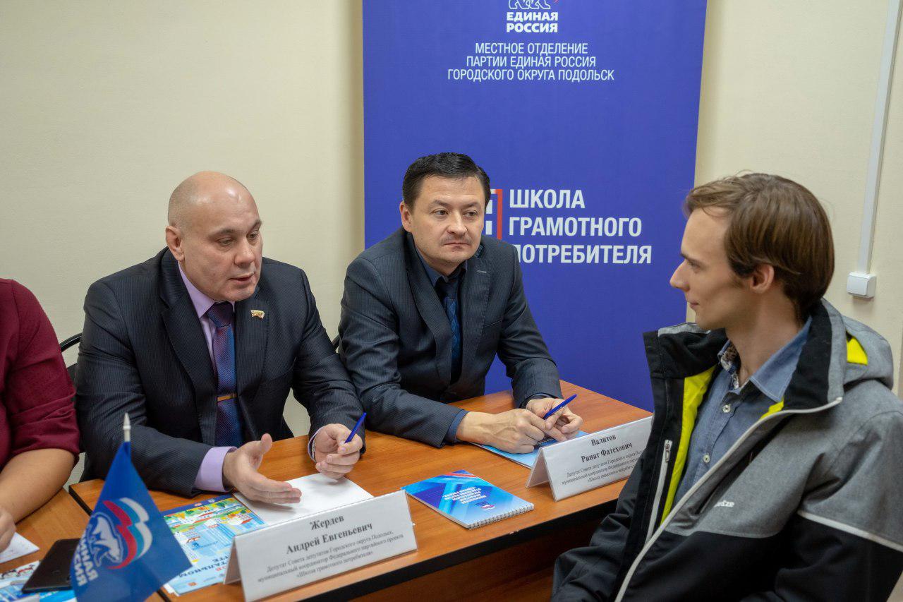 Прием граждан вели муниципальные кураторы проекта, депутаты Фракции «Единая Россия» в Совете депутатов Городского округа Подольск А.Е. Жердев, Р.Ф. Валитов, директор управляющей организации ООО «УК Доверие» С.С. Шилин и заместитель директора управляющей организации ООО «Антей+» О.В. Судакова.