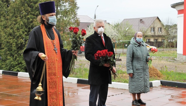 После церковного таинства возложили цветы к памятнику погибшим воинам и почтили память героев минутой молчания.